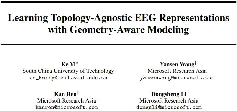 该论文发表于NeurIPS 2023(CCF A),题目为《Learning Topology-Agnostic EEG Representations with Geometry-Aware Modeling》。