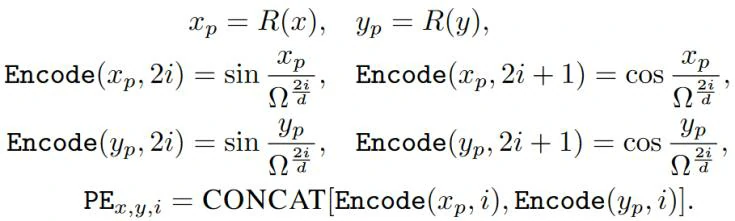 传统的位置编码只考虑加入通道间的顺序信息,这丢失了通道间的空间信息。本文借助二维流形的思想,将多维位置编码定义为: