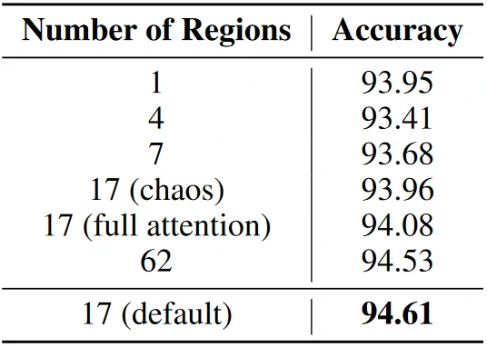 在这一部分,本文深入分析了MMM中不同的统一拓扑对SEED数据集的影响。本文将默认的17区域设置与几种变体进行了比较: