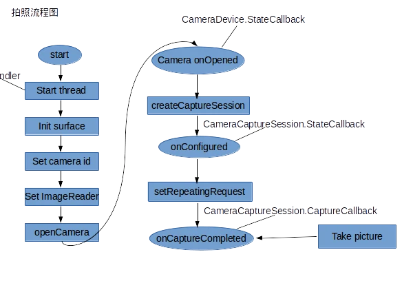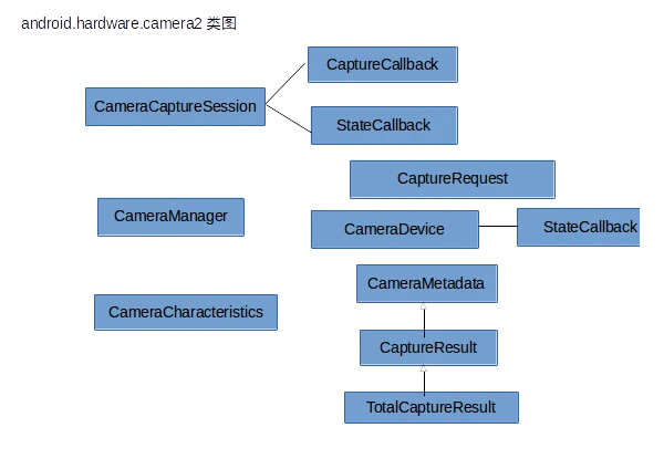 类图中有着三个重要的 callback,其中 CameraCaptureSession.CaptureCallback 将处理预览和拍照图片的工作,需要重点对待。