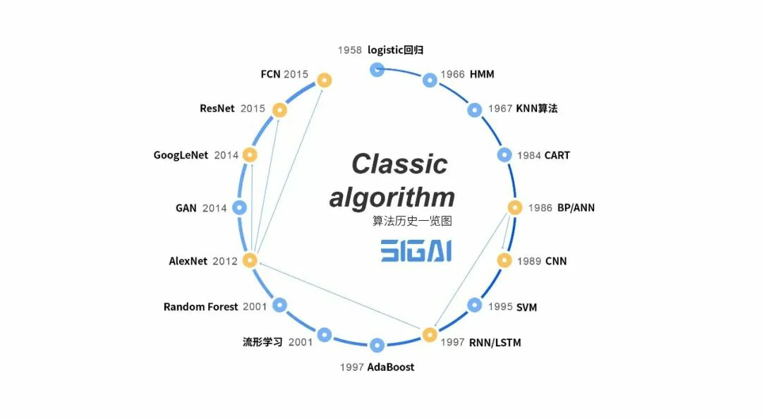 上图展示了过去近40年里机器学习领域诞生的主要算法(重点是有监督学习)