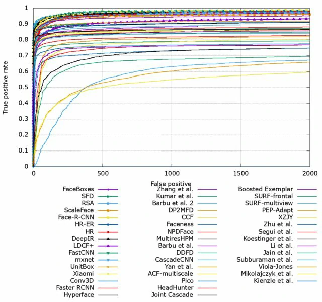 各种人脸检测算法在FDDB上的精度(来自FDDB官网)