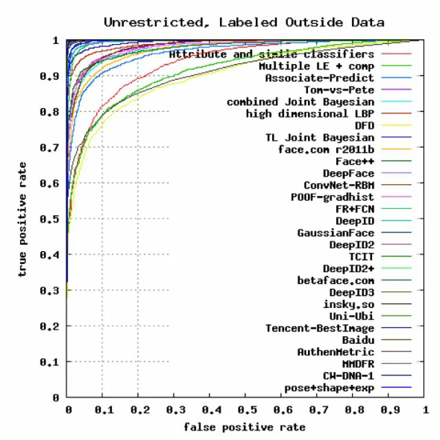 各种人脸识别算法在LFW数据库上的精度(来自LFW官网)