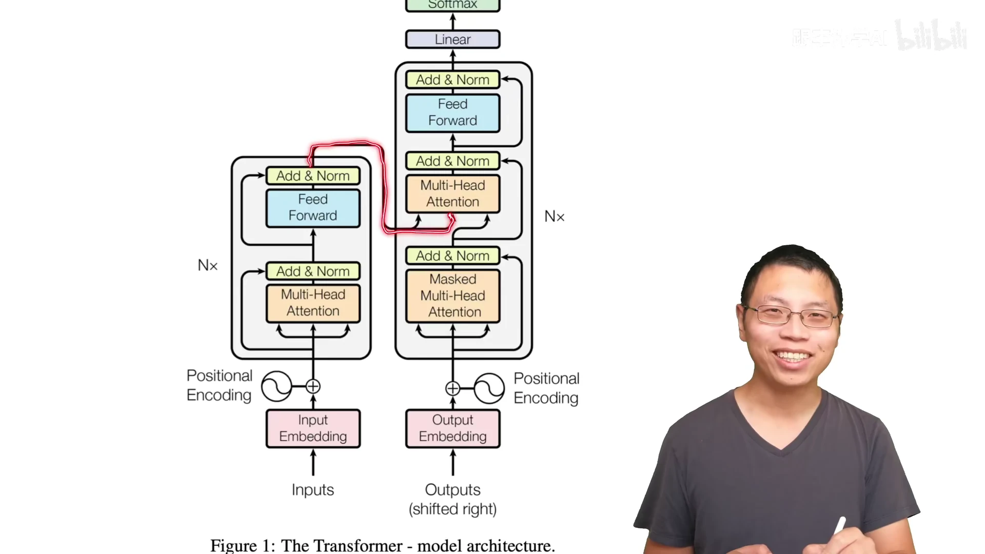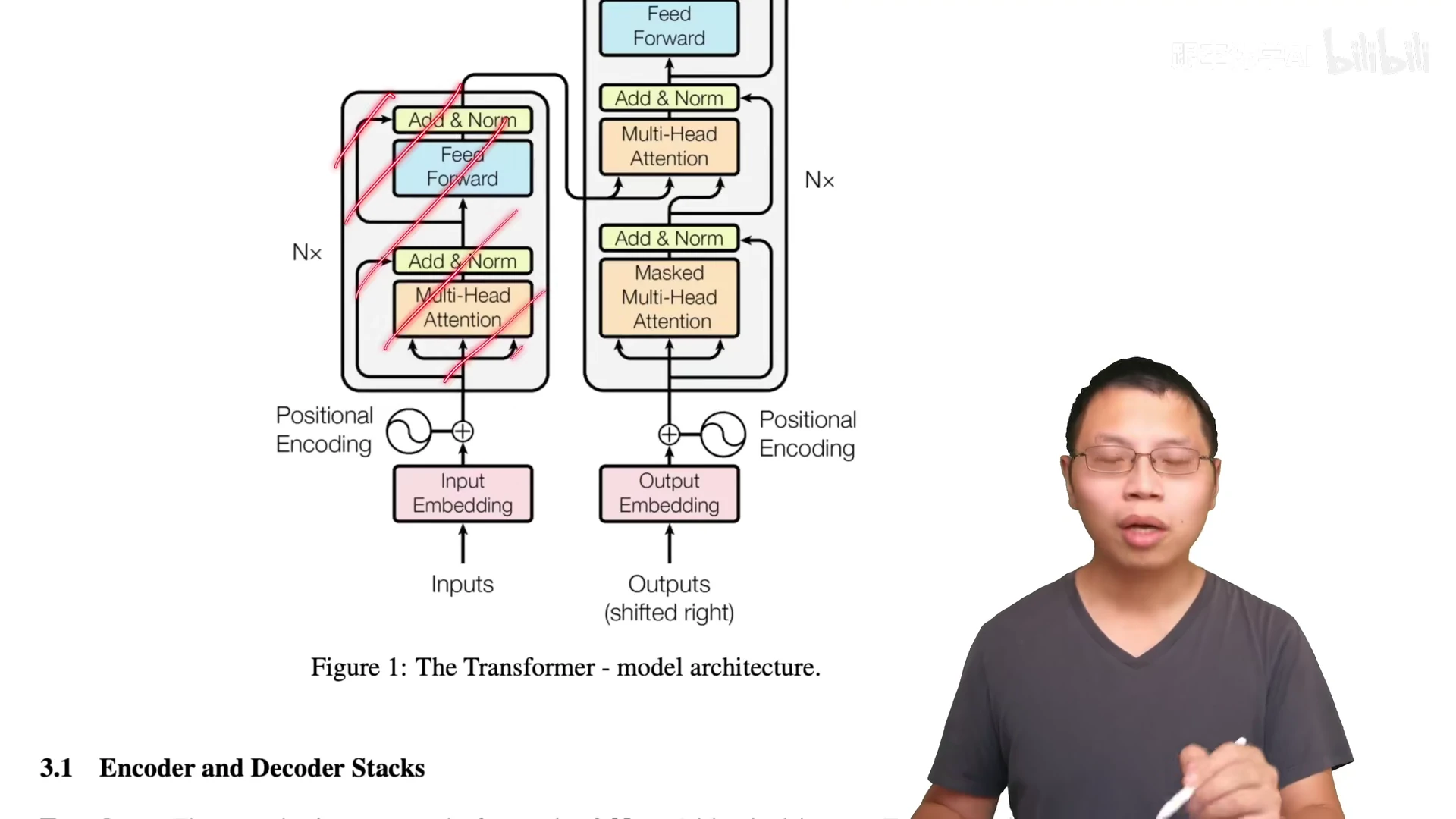 第一段: encoder-decoder 架构 + autogressive in decoder