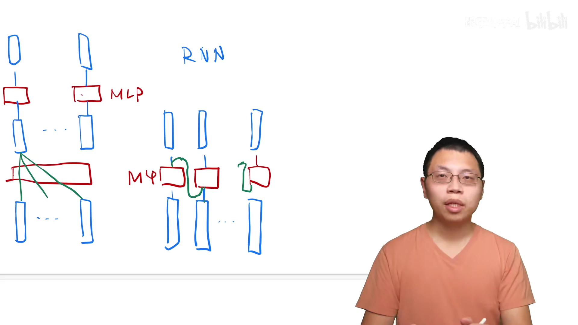 RNN的inductive bias是sequentiality和time invariance,即序列顺序上的timesteps有联系,和时间变换的不变性(rnn权重共享)