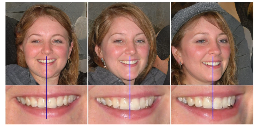 图8. progressive growing会导致 “相位 “伪影。在这个例子中,牙齿没有跟随姿势,而是与相机保持一致,如蓝线所示