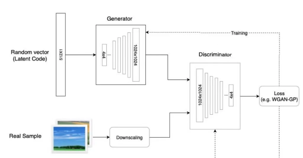生成性对抗网络(GAN)是机器学习中一个相对较新的概念,于2014年首次引入。GAN的目标是合成与真实图像无法区分的人工样本,如图像。GAN的基本组成部分是两个神经网络:一个新样本的生成器(G),一个从训练数据和生成器输出中提取样本并预测它们是“真”还是“假”的鉴别器(D)。生成器的输入是一个随机向量(噪声),因此其初始输出也是噪声。随着训练的进行,当它收到鉴别器的反馈时,会学习合成更“真实”的图像。鉴别器还通过将生成的样本与真实样本进行比较,随着训练的进行不断改进,使得生成器更难欺骗它。