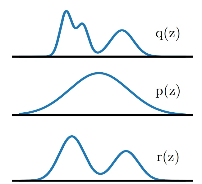 图13 提出了一种EBM先验,使用基础先验p(z)和 reweighting factor r(z)的乘积,旨在使p(z)更接近aggregate posterior q(z)