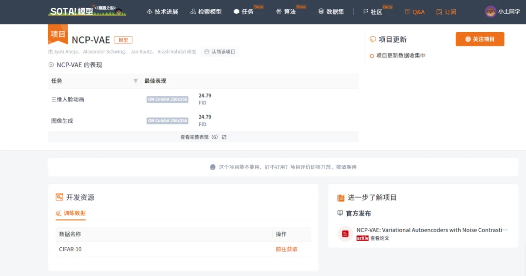 | NCP-VAE | 前往SOTA!模型平台获取实现资源:https://sota.jiqizhixin.com/project/74d15cbe-7f75-434a-a1cf-a69ae303eec6 |