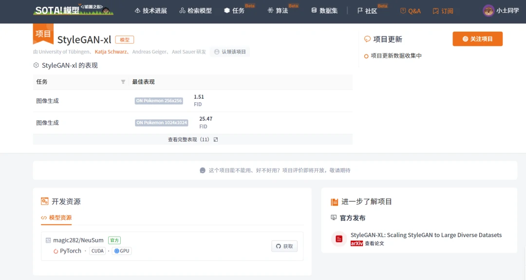 当前 SOTA!平台收录 StyleGAN-XL 共 1 个模型实现资源。