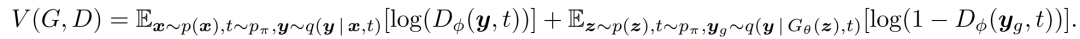 Diffusion-GAN的对应目标是vanilla GAN的最小-最大目标,定义为