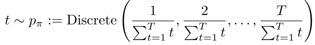 为了更好地防止鉴别器过拟合,定义t作为一个不对称的离散分布,鼓励鉴别器在T增加时观察新增加的扩散样本。