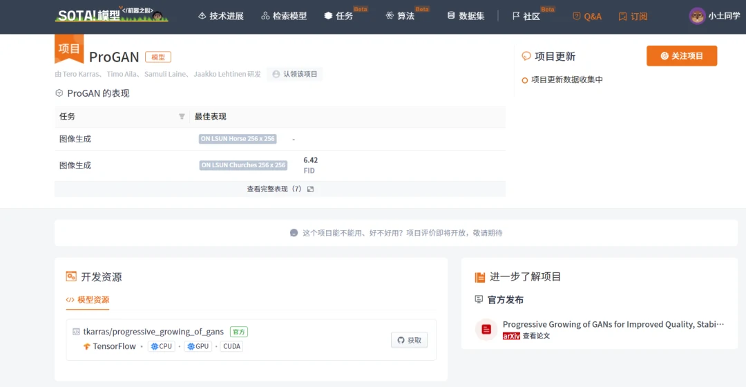 | ProGAN | 前往SOTA!模型平台获取实现资源:https://sota.jiqizhixin.com/project/0190e1fa-5643-4043-8b75-9b863a6d20db |