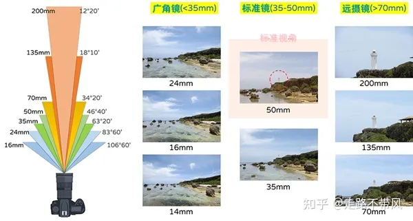 - 50mm为标准焦距(最接近人眼);<35mm 为广角镜头; >70mm 为远摄镜头