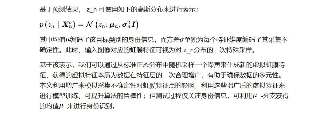 为了将身份信息和采集不确定性信息加以区分,本文提出了概率隐表达,该表达方法使用多元高斯分布来表示虹膜图像。