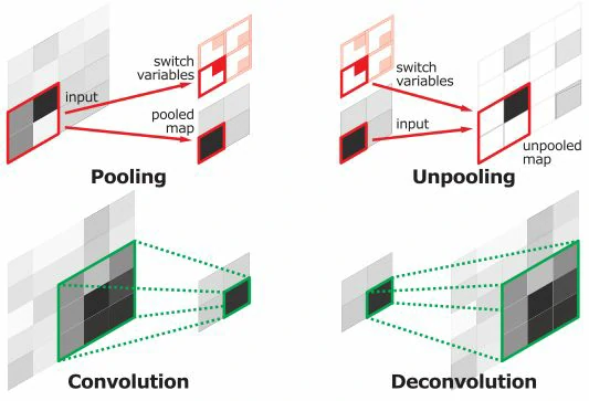 这个上采样是通过反卷积(deconvolution)实现的。对第 5 层的输出(32倍放大)反卷积到原图大小,得到的结果还是不够精确,一些细节无法恢复。于是 Jonathan 将第 4 层的输出和第 3 层的输出也依次反卷积,分别需要 16 倍和 8 倍上采样,结果就精细一些了。下图是这个卷积和反卷积上采样的过程: