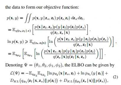 将特征分开学习,通过将特征建模为标签潜变量Zl和语义潜变量Zs,签潜变量Zl需要同时负责重构和判断标签。在分类时以Zs辅助去掉无关分类的信息。