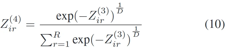 - 归一化层:在这一层中,本研究对前一层的激发水平进行归一化处理。由于(xid-mrd)^2 / 2σrd^2的结果始终为正,连续求和可能会产生饱和问题,因此进行归一化处理。在后续计算中使用平均值,并且在计算中,平均值的计算会是指数形式。具体公式如下: