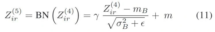 其中mB是样本的均值,σB是其标准差。γ和m是学习参数,ϵ是一个小常数,用于防止分母为零。
