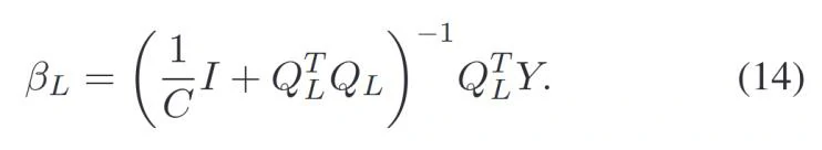 为了快速求解后验参数β,本研究提前确定子层的数量,获得前一层的输出,然后计算当前层的参数。最后求解带有给定常数C的岭回归问题,使用LLM算法快速求解: