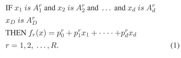 经典的TSK模糊分类器由一组规则组成,其中第r条模糊规则如下: