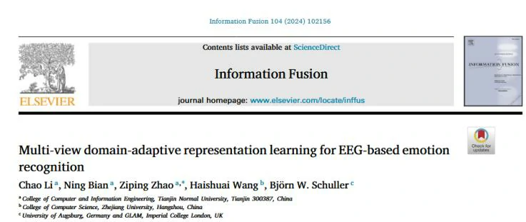 该论文发表于Information Fusion(中科院一区,IF=14.8),题目为《Multi-view domain-adaptive representation learning for EEG-based emotion recognition》。