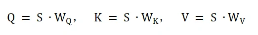 其中S为输入序列(时间帧×特征维度),,,为可学习权重矩阵, 分别表示查询空间、键空间和值空间。