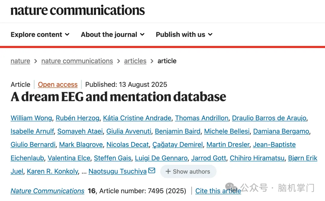 Nature Communications | DREAM 数据库—全球首个睡眠脑电与梦境报告的标准化开放数据库 发表于 2026-02-01 分类于 🌙进阶学习 , ⭐脑机接口与混合智能研究团队(BCI团队) , 💫学习报告 阅读次数: Valine: 本文字数: 1.2k 阅读时长 ≈ 3 分钟阅读全文 »